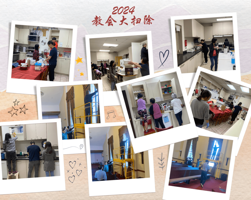 教會於本月4日進行了春季大掃除,旨在為我們教會提供一個整潔、舒適的環境,以促進更好的敬拜和交流。三堂都有弟兄姊妹參與,約書亞團契也有團隊組織和執行,持續了整個上午。