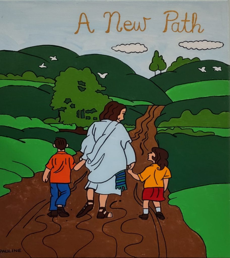 在這次浸禮中,約書亞團契的成員 Phi 和 Van 的子女 Alex 和 Pauline,透過潘牧師的青草地事工,認識了主耶穌。對於他們來說,能夠在眾人面前受洗是一個非常大的挑戰;然而,他們不僅克服了這一挑戰,還在台上獻上了讚美的歌。Pauline 更用圖畫表達了她的心聲——《A new path》和《Prayer》。看到這兩幅圖畫,我們深深地感受到了神奇異的救恩!