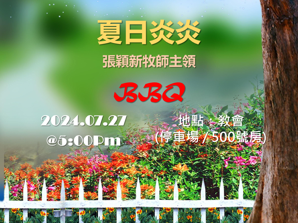 七月的團契聚會正值盛夏,我們將在聚會前舉辦一次令人期待的BBQ活動。這是一個難得的機會,讓我們在享受美味佳餚的同時,也能有更多時間彼此交流和認識新朋友。